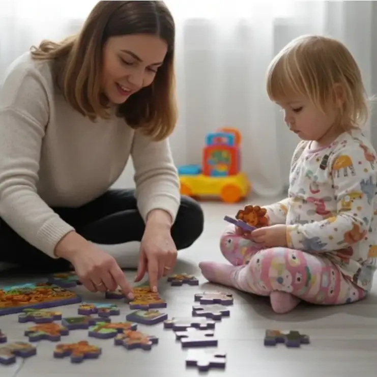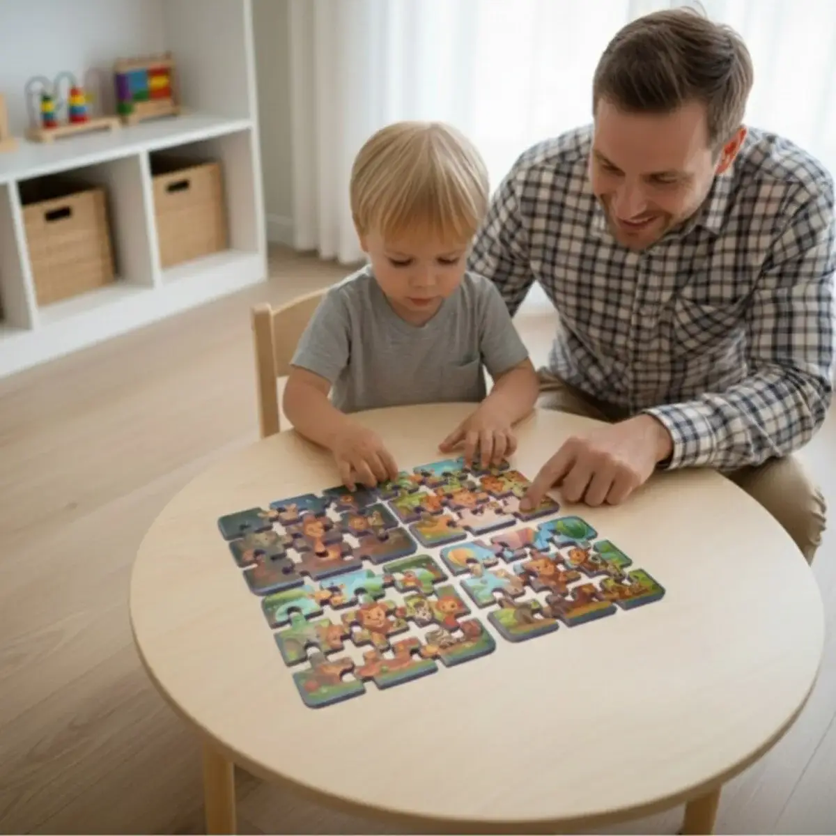 Tinyup 4 in 1 EVA Foam Puzzle Set – Safari Hayvanları, çocukların eğlenerek öğrenmesini destekleyen eğitici ve öğretici bir yapboz setidir. Safari temalı bu set, her biri farklı görsellere sahip 4 adet EVA puzzle içerir ve her puzzle 9 parçadan oluşur. Yumuşak ve hafif EVA köpük malzemeden üretilen tak-çıkar parçalar, çocukların küçük ellerine uygun olup güvenli bir oyun deneyimi sunar. Renkli safari hayvanları görselleri sayesinde çocukların ilgisini çekerken motor becerileri, el-göz koordinasyonu, dikkat ve problem çözme yeteneklerinin gelişimine katkı sağlar. 15 x 11 cm ölçülerindeki puzzle’lar evde ve okul öncesi eğitim ortamlarında rahatlıkla kullanılabilir. 3 yaş ve üzeri çocuklar için uygundur.