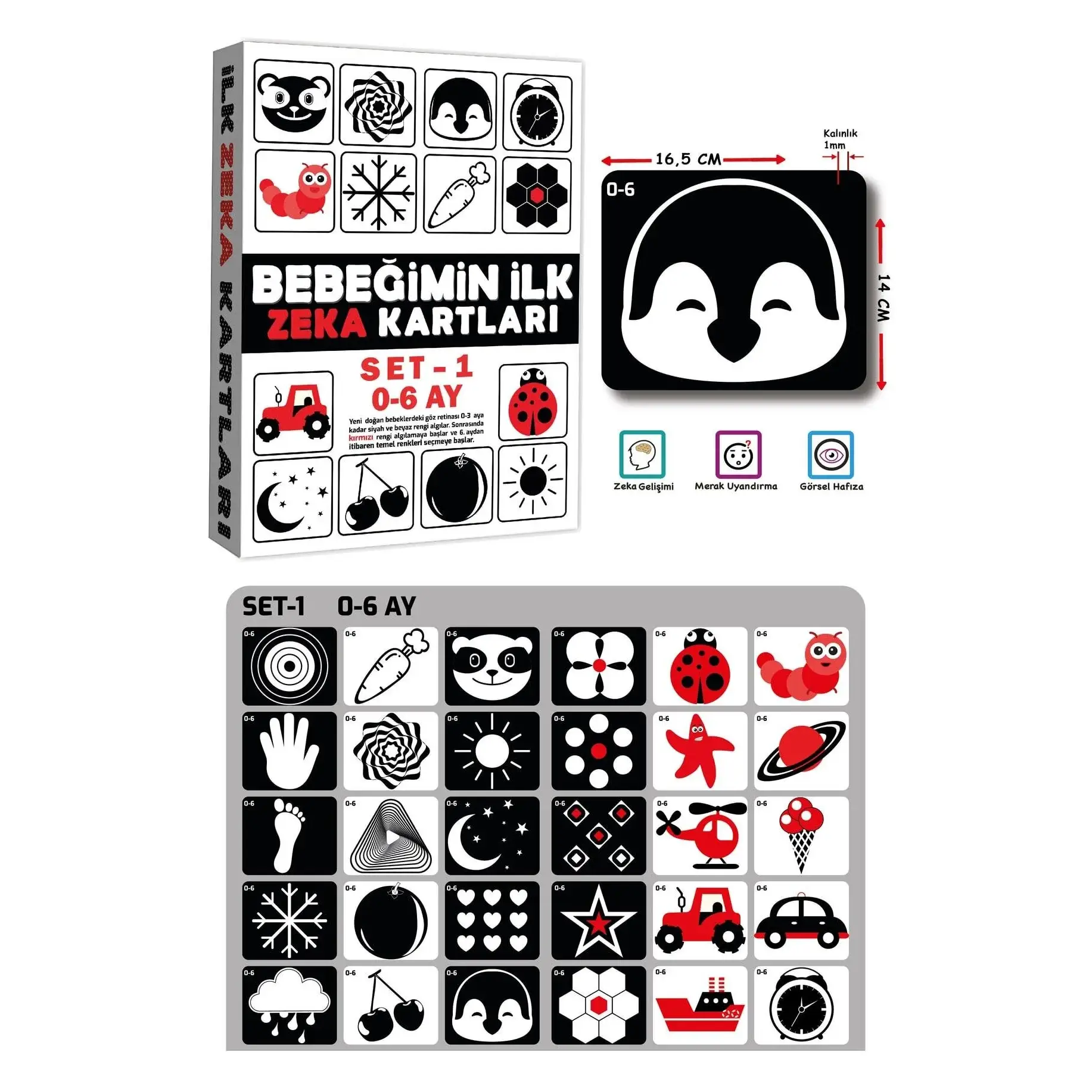 Bebeğimin İlk Zeka Kartları, 0–12 ay arası bebeklerin erken dönemde duyusal ve bilişsel gelişimini desteklemek için özel olarak hazırlanmıştır. 0–6 ay Erken Eğitim Zeka Kartları ise yüksek kontrastlı görselleriyle bebeklerin görsel algısını güçlendirir, dikkat süresinin artmasına yardımcı olur. Günlük kısa oyunlarla öğrenmeyi destekleyen, ebeveyn–bebek etkileşimini artıran ideal bir erken eğitim setidir.