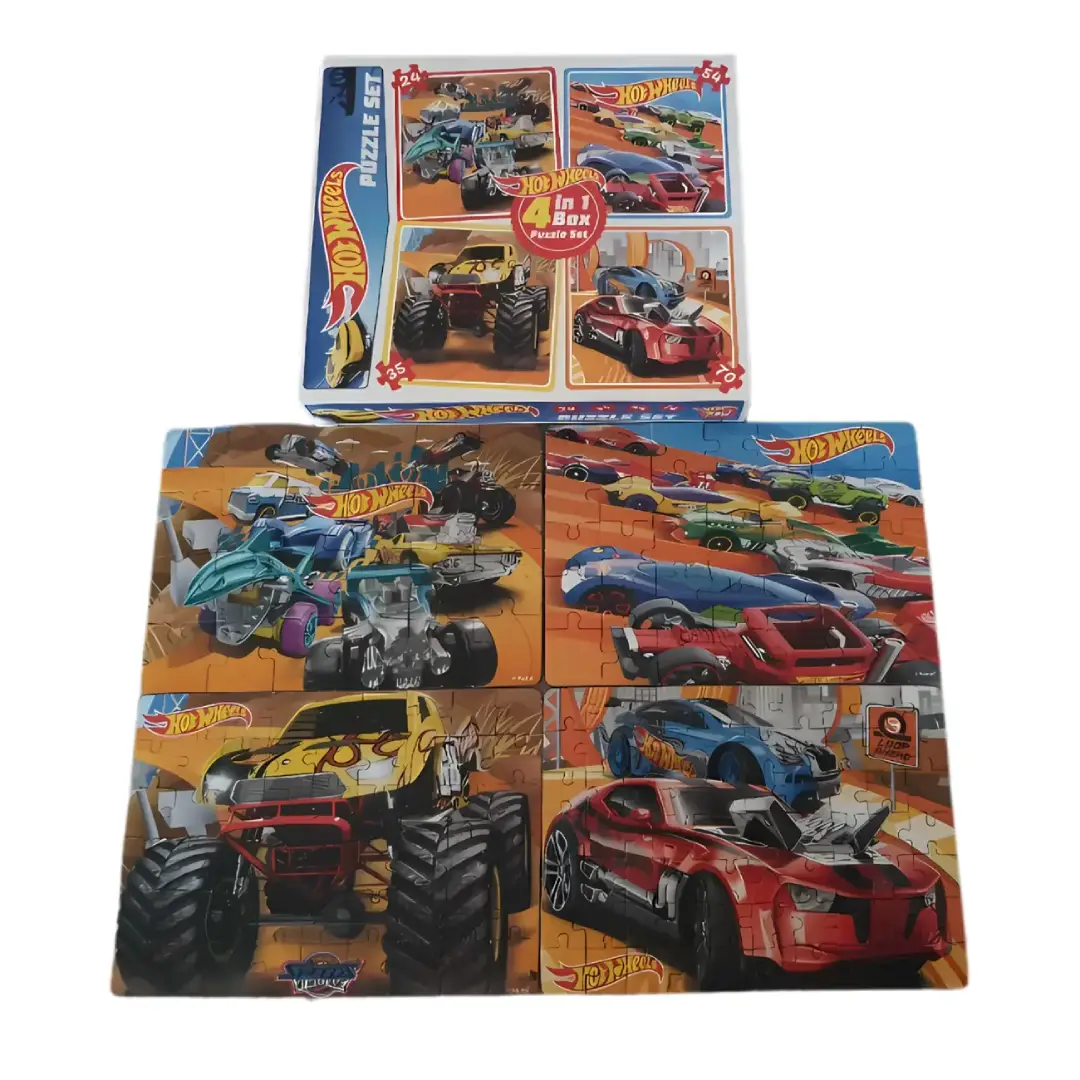 Hot Wheels 4 in 1 Puzzle Seti, hız ve macera temalı renkli görselleriyle çocuklara eğlenceli bir oyun deneyimi sunar. 24, 25, 54 ve 70 parçadan oluşan 4 farklı puzzle sayesinde çocuklar seviyelerine uygun şekilde yapboz yapabilir. Dikkat, problem çözme ve el-göz koordinasyonu gelişimini destekler.