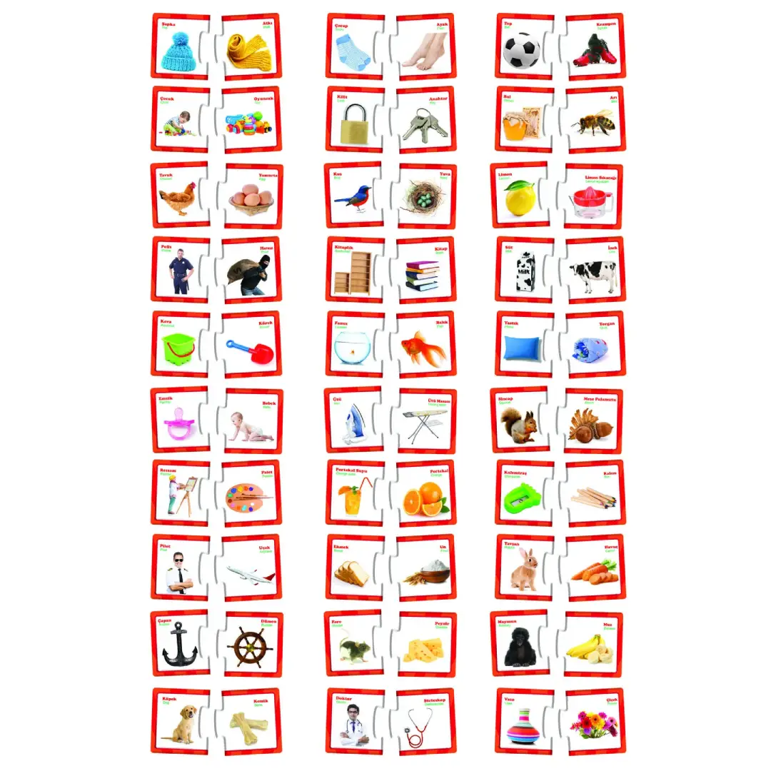 İlişki Kurma – Eğlenceli Bulmacalar, okul öncesi çocuklar için hazırlanmış eğitici bir puzzle setidir. Gerçek fotoğraflarla desteklenen ön–arka eşleştirmeli 2’li bulmacalar sayesinde çocuklar nesneler arasındaki ilişkileri kolayca öğrenir. Eğlenerek öğrenmeyi destekleyen bu set; dikkat, dil gelişimi ve mantık yürütme becerilerinin gelişmesine katkı sağlar.